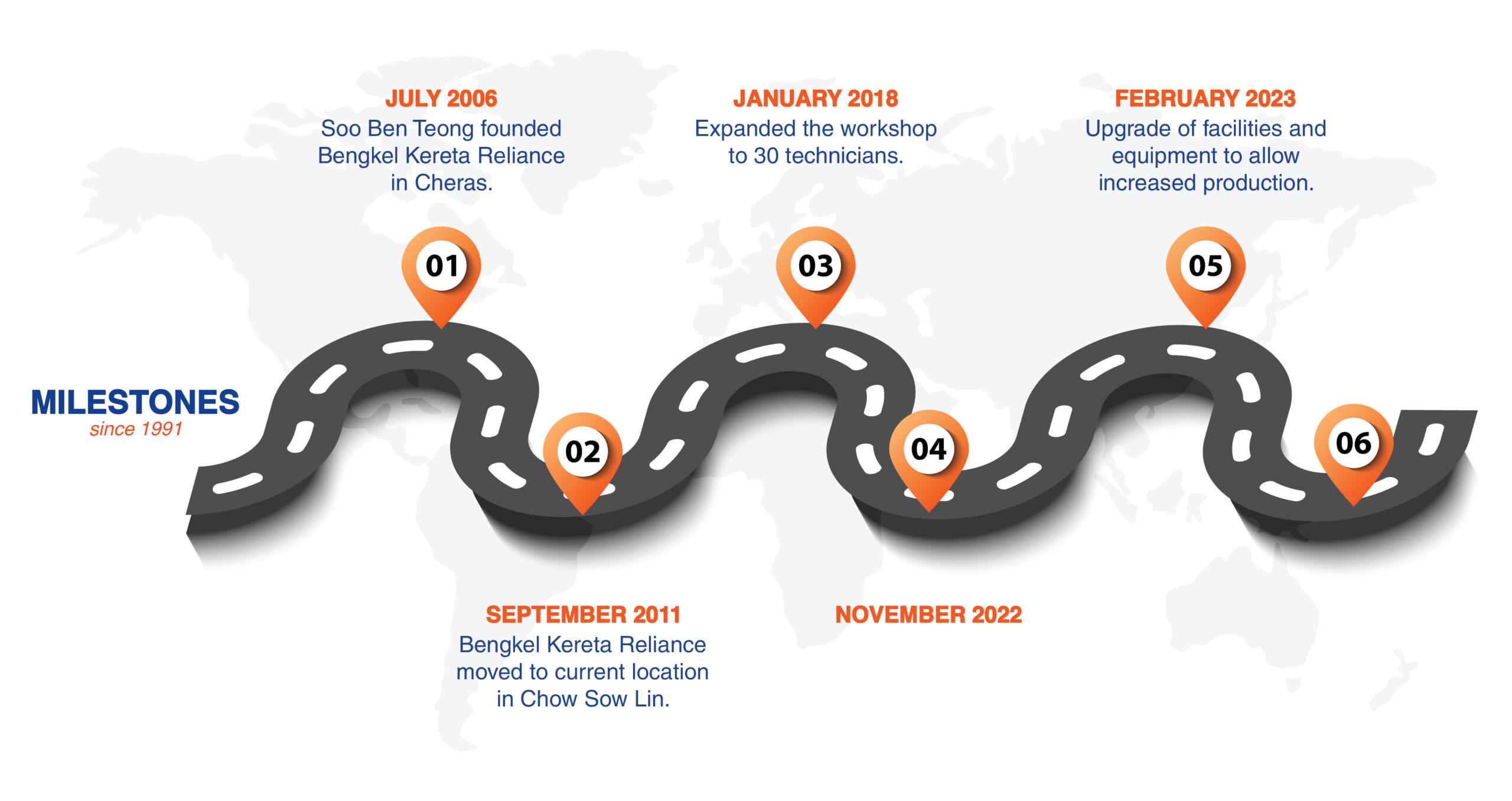 Our management team brings over 35 years of combined experience in the automotive and insurance industries, dating back to 1991 and 1989 respectively. Since 1991, Reliance has successfully completed accident claim and repair services for more than 60,000 satisfied car owners across Malaysia.